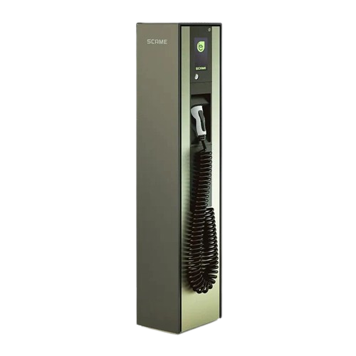 User interaction is facilitated through an LCD display, ensuring intuitive operation. Optionally, access can be restricted to authorized users. BE-A charging pillars can be managed either through Scame's proprietary management system or can be linked to an external E-mobility Service Provider via the OCPP standard communication protocol.